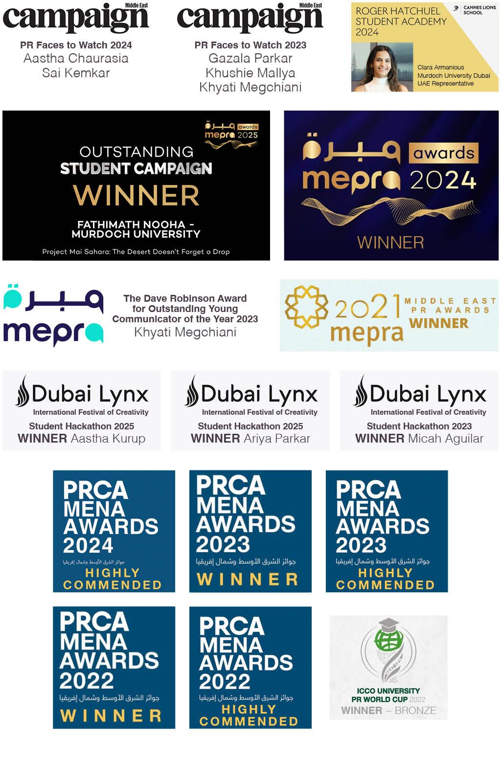 We are members of industry associations – Middle East Public Relations Association (MEPRA) and the Public Relations and Communications Association (PRCA MENA). All Communication students have access to their respective industry events, training, and internship opportunities. MEPRA student membership includes: